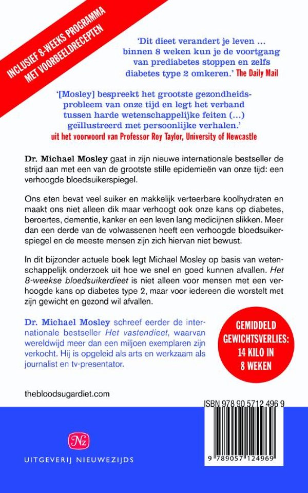 In dit bijzonder actuele boek legt Michael Mosley op basis van wetenschappelijk onderzoek uit hoe we snel en goed kunnen afvallen. Het 8-weekse bloedsuikerdieet is niet alleen voor mensen met een verhoogde kans op diabetes type 2, maar voor iedereen die worstelt met zijn gewicht en gezond wil afvallen.