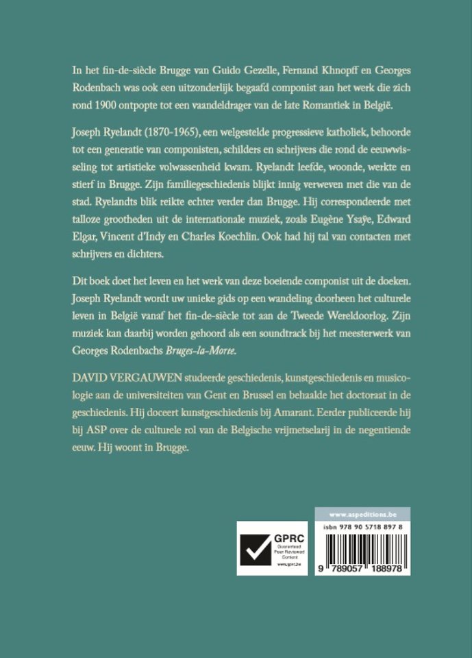 Dit boek doet het leven en het werk van deze boeiende componist uit de doeken. Joseph Ryelandt wordt uw unieke gids op een wandeling doorheen het culturele leven in België vanaf het fin-de-siècle tot aan de Tweede Wereldoorlog. Zijn muziek kan daarbij worden gehoord als een soundtrack bij het meesterwerk van Georges Rodenbachs, Bruges-la-Morte.