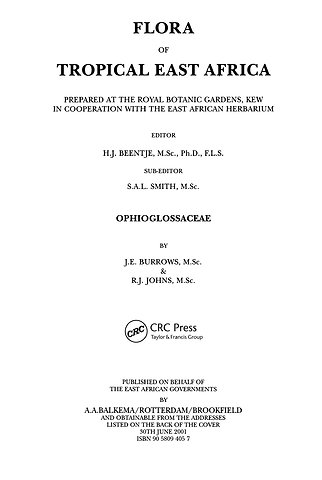 This book is a comprehensive review of the genera of Ophioglossaceae, the adder's-tongue family, found in tropical East Africa. It presents information on their character, occurrence, habitat, phenotypic variations and distribution of each of the species under these genera.
