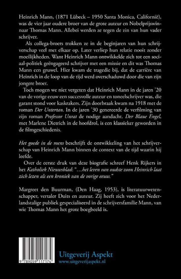 Het goede in de mens beschrijft de ontwikkeling van het schrijverschap van Heinrich Mann binnen de context van de tijd waarin hij leefde.