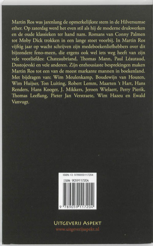 Dostojevski en vele anderen. Zijn enthousiaste besprekingen maken Martin Ros tot een van de meest markante mannen in boekenland. Met bijdragen van: Wim Meulenkamp, Boudewijn van Houten, Wim Huijser, Ton Luiting, Robert Lemm, Maarten 't Hart, Hans Renders, Hans Kooger, J. Mikkers, Jeroen Wielaert, Perry Pierik,