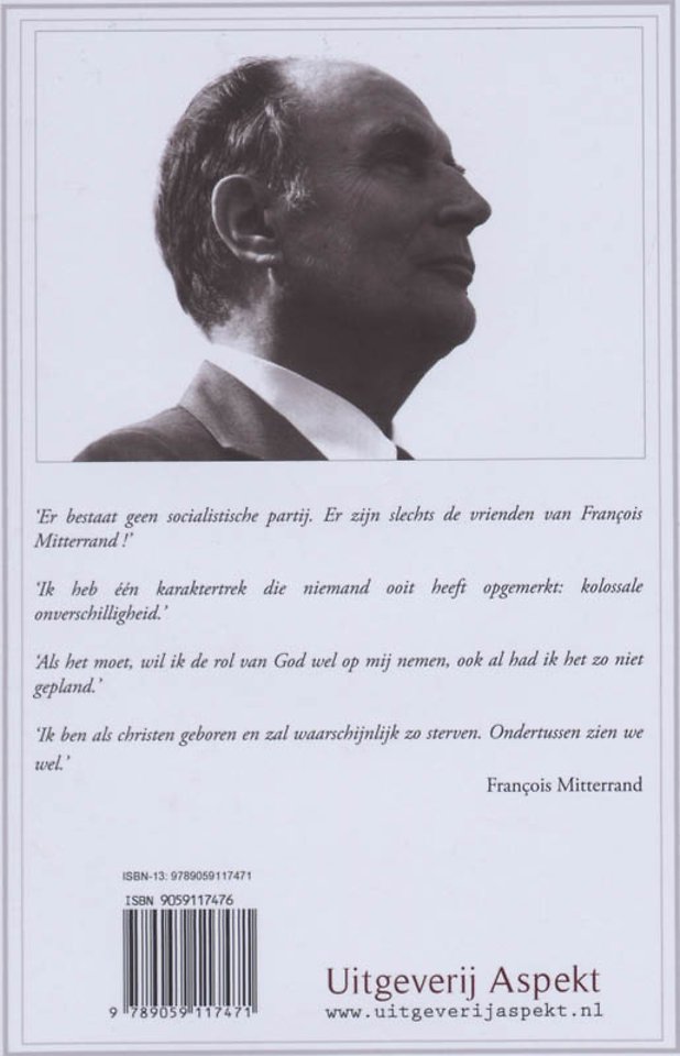 en van het socialisme naar Europa? Hoe werd hij de onverbiddelijke tegenstander van Generaal de Gaulle? Hoe triomfeerde hij over zijn concurrenten? Welke rol speelde hij in de internationale politiek? Welke fouten beging hij? In Rwanda? Bij de Duitse hereniging? Tijdens de Golfoorlog? In zijn diabolisch en tactisch spel met het Front national? Waarom bleef hij bevriend met een oorlogsmisdadiger als René Bousquet? Op al deze vragen en nog andere geeft Vincent Gounod een genuanceerd doch kritisch antwoord. Daarbij luisterde hij naar het getuigenis van naaste medestanders, politieke concurrenten en politieke vijanden van de grote politicus. Een volledige en eerlijke biografie. Vincent Gounod (1951) is diplomaat en woont en werkt in Genève.