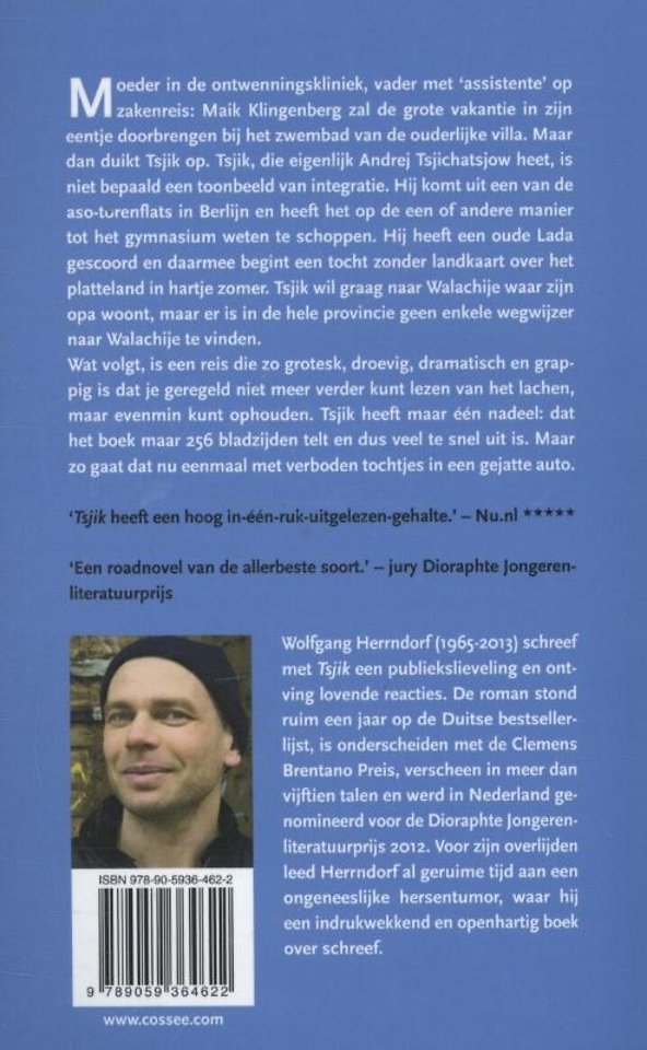 Tsjik is een hartverwarmende en hartverscheurende avonturenroman die maar één nadeel heeft: dat hij maar 256 bladzijden telt en dus veel te snel uit is. Maar zo gaat dat nu eenmaal met verboden tochtjes in een gejatte auto.