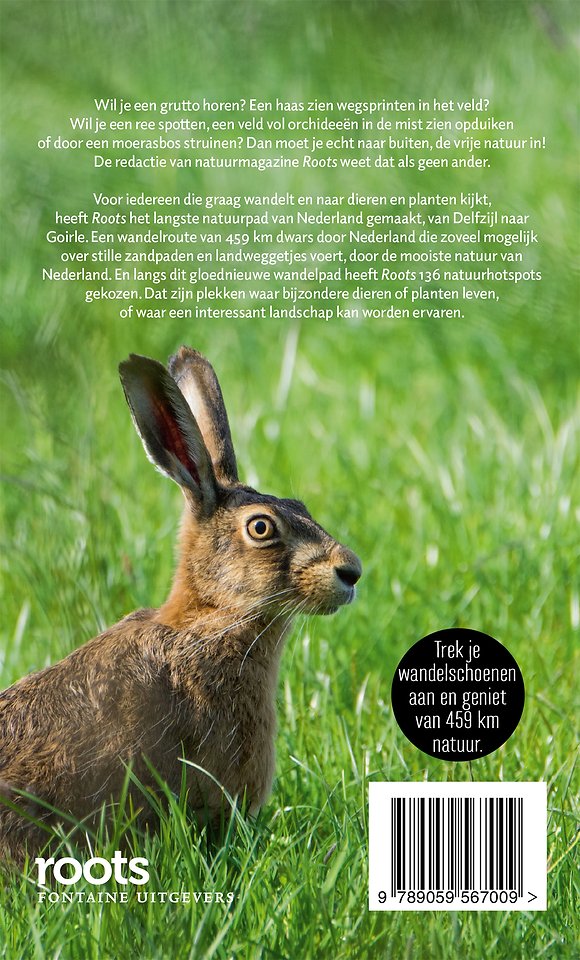 Voor iedereen die graag wandelt en naar dieren en planten kijkt, heeft Roots het langste natuurpad van Nederland gemaakt, van Delfzijl naar Goirle. Een wandelroute van 459 km dwars door Nederland die zoveel mogelijk over stille zandpaden en landweggetjes voert, door de mooiste natuur. En langs dit gloednieuwe wandelpad zijn 136 natuurhotspots gekozen. Dat zijn plekken waar bijzondere dieren of planten leven, of waar een interessant landschap kan worden ervaren.