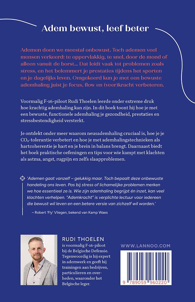 Voormalig F-16-piloot Rudi Thoelen leerde onder extreme druk hoe krachtig ademhaling kan zijn. In dit boek toont hij hoe je met een bewuste, functionele ademhaling je gezondheid, prestaties en stressbestendigheid versterkt.