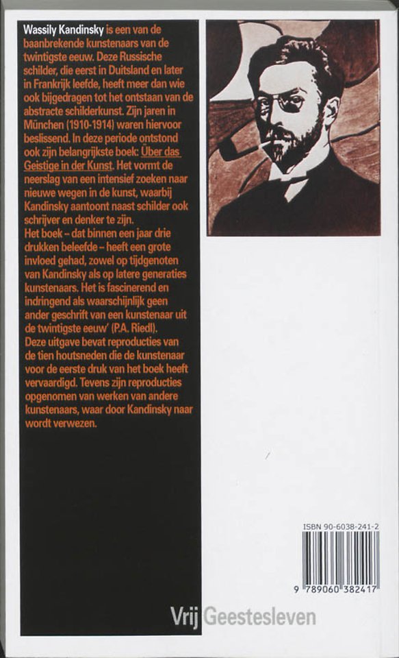 Wassily Kandinsky is een van de baanbrekende kunstenaars van de twintigste eeuw. Deze Russische schilder, die eerst in Duitsland en later in Frankrijk leefde, heeft meer dan wie ook bijgedragen tot het ontstaan van de abstracte schilderkunst. Zijn jaren in München (1910-1914) waren hiervoor beslissend. In deze periode ontstond ook zijn belangrijkste boek: Über das Geistige in der Kunst. Het vormt de neerslag van een intensief zoeken naar nieuwe wegen in de kunst, waarbij Kandinsky aantoont naast schilder ook schrijver en denker te zijn. Het boek - dat binnen een jaar drie drukken beleefde - heeft een grote invloed gehad, zowel op tijdgenoten van Kandinsky als op latere generaties kunstenaars. 'Het is fascinerend en indringend als waarschijnlijk geen ander geschrift van een kunstenaar uit de twintigste eeuw' (P.A. Riedl). Deze uitgave bevat reproducties van de tien houtsneden die de kunstenaar voor de eerste druk van het boek heeft vervaardigd. Tevens zijn reproducties opgenomen van werken van andere kunstenaars, waar door Kandinsky naar wordt verwezen.