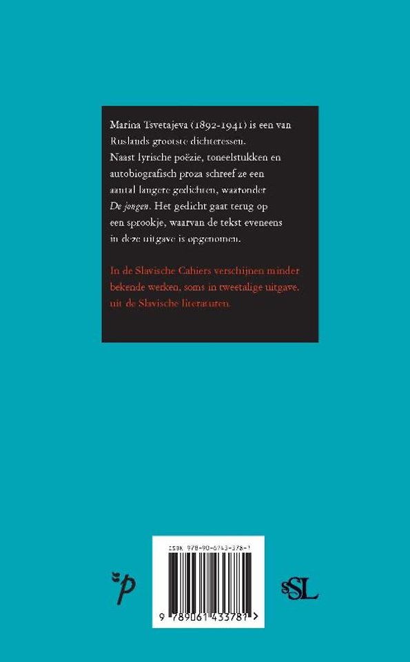 Marina Tsvetajeva (1892-1941) is een van Ruslands grootste dichteressen. Naast lyrische poëzie, toneelstukken en autobiografisch proza schreef ze een aantal langere gedichten, waaronder 'De jongen'. Het gedicht gaat terug op een sprookje, waarvan de tekst eveneens in deze uitgave is opgenomen.