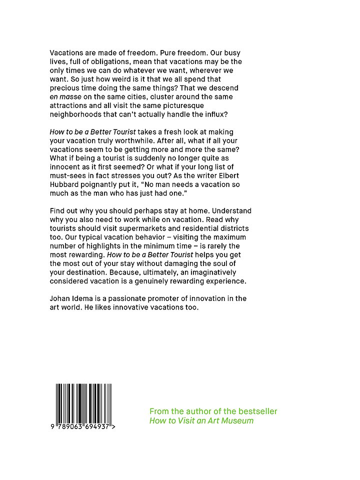 How to be a Better Tourist takes a fresh look at making your vacation truly worthwhile. After all, what if all your vacations seem to be getting more and more the same? What if being a tourist is suddenly no longer quite as innocent as it first seemed? Or what if your long list of must-sees in fact stresses you out? As the writer Elbert Hubbard poignantly put it, "No man needs a vacation so much as the man who has just had one."