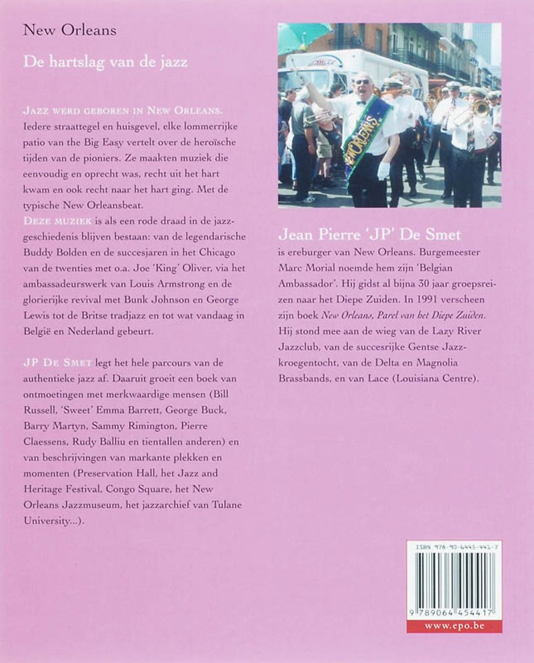 JP DE SMET lagt het hele parcours van de authentieke jazz af. Daaruit groeit een boek van ontmoetingen met merkwaardige mensen (Bill Russell, 'Sweet' Emma Berrett, George Buck, Barry Martyn, Sammy Rimington, Pierre Claessens, Rudy Balliu en tientallen anderen) en van beschrijvingen van markante plekken en monenten (Preservation Hall, het Jazz and Heritage Festival, Congo Square, het New Orleans Jazzmuseum, het jazzarchief van Tulane University..).