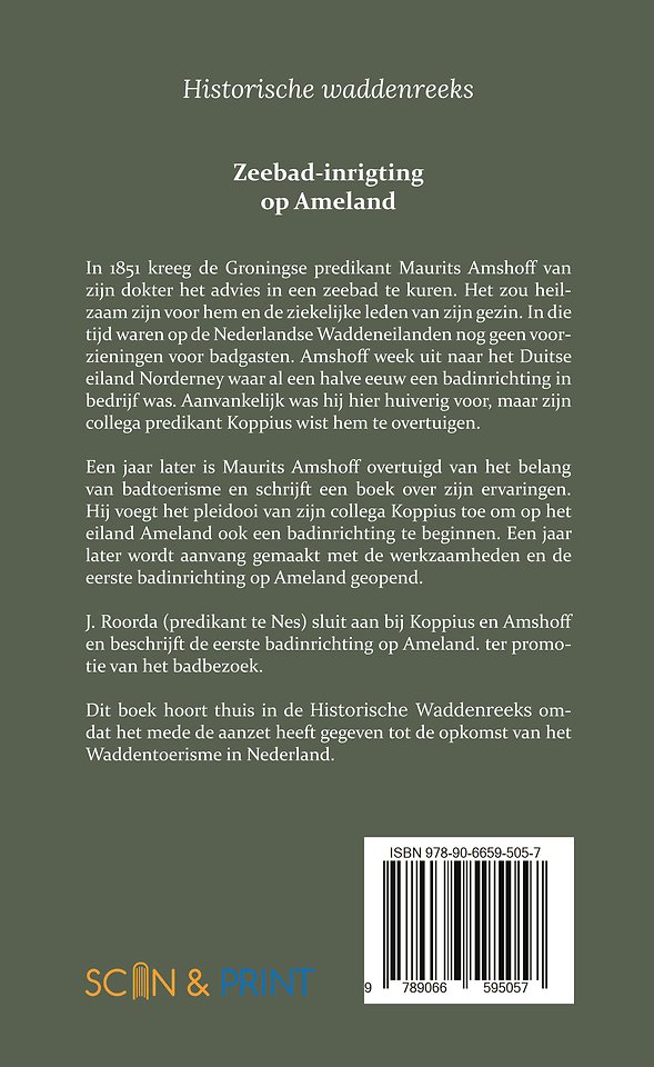 J. Roorda (predikant te Nes) sluit aan bij Koppius en Amshoff en beschrijft de eerste badinrichting op Ameland. ter promotie van het badbezoek.