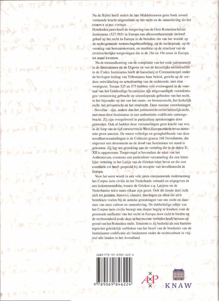 De meest volledige en gezaghebbende van deze novellenverzamelingen is de Collectio graeca 168 Novellarum, die ongeveer een decennium na de dood van Justinianus tot stand is gekomen. Zij ligt ten grondslag aan de vertaling die in de delen x-xii is opgenomen. Toegevoegd is bovendien de tekst van het Authenticum, eveneens een particuliere verzameling die een letterlijke vertaling in het Latijn van de Griekse tekst bevat en die een essentiële rol heeft gespeeld bij de receptie van novellenrecht in Europa.