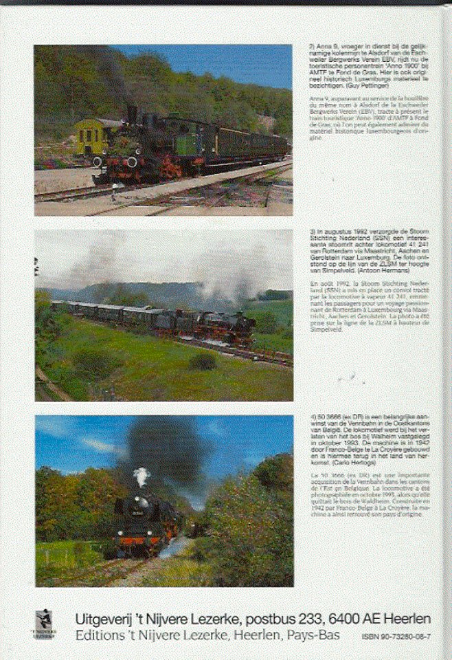 Hardcover, 144 pagina's met 238 foto's en illustratiesin zwart/wit en kleur waaronder de rail landkaarten van België en Luxemburg plus het register van de grote losse Benelux Rail landkaart met onder andere alle stations en de geografische omstandigheden van alle spoorlijnen Tekst in het Nederlands en Frans inclusief materieel overzichten en een kaartje waarop te zien is waar de foto's gemaakt zijn.