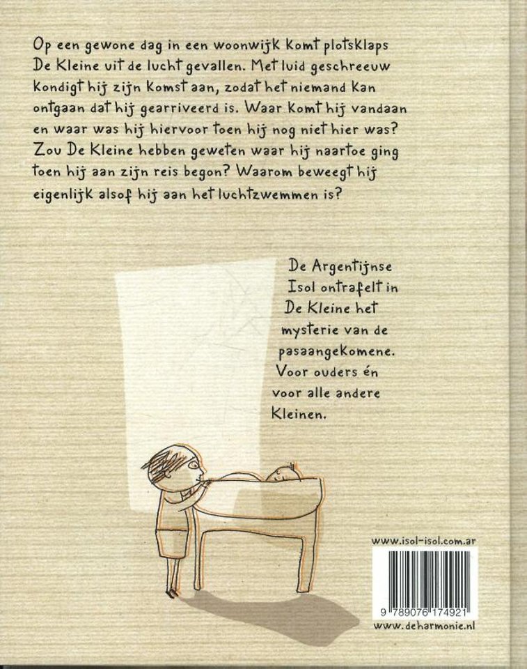 Op een gewone dag in een woonwijk komt plotsklaps De Kleine uit de lucht gevallen. Met luid geschreeuw kondigt het kind zijn komst aan, zodat het niemand kan ontgaan dat het gearriveerd is. Waar komt het vandaan en waar was het hiervoor toen het nog niet hier was? Waarom beweegt het alsof het in de lucht zwemt?