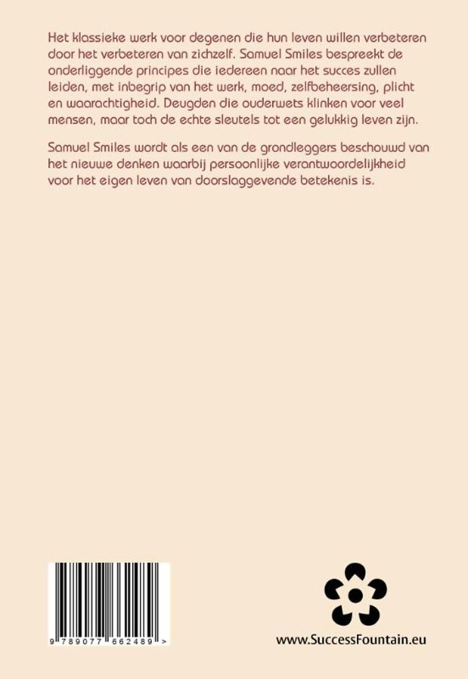 Het klassieke werk voor degenen die hun leven willen verbeteren door het verbeteren van zichzelf. Samuel Smiles bespreekt de onderliggende principes die iedereen naar het succes zullen leiden, met inbegrip van het werk, moed, zelfbeheersing, plicht en waarachtigheid. Deugden die ouderwets klinken voor veel mensen, maar toch de echte sleutels tot een gelukkig leven zijn.