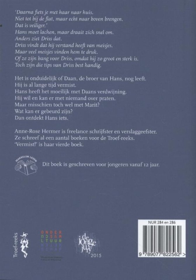 Ze schreef al een aantal boeken voor de Troef-reeks. 'Vermist!' is haar vierde boek.