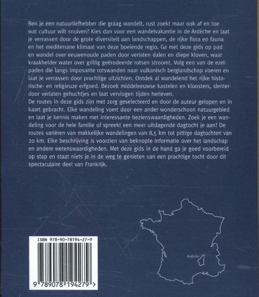 Ben je een natuurliefhebber die graag wandelt, rust zoekt maar ook af en toe wat cultuur wilt snuiven? Kies dan voor een wandelvakantie in de Ardèche en laat je verrassen door de grote diversiteit aan landschappen, de rijke flora en fauna en het mediterrane klimaat van deze boeiende regio. Ga met deze gids op pad en wandel over eeuwenoude paden door verlaten dalen en diepe kloven, waar kraakhelder water over grillig geërodeerde rotsen stroomt. Volg een van de ezelspaden die langs imposante rotswanden naar vulkanisch berglandschap voeren en laat je verrassen door prachtige uitzichten. Ontdek al wandelend het rijke historische- en religieuze erfgoed. Bezoek middeleeuwse kastelen en kloosters, slenter door verlaten gehuchtjes en laat vervlogen tijden herleven.