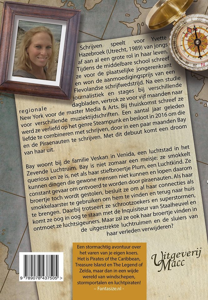 Schrijven speelt voor Yvette Hazebroek (Utrecht, 1989) van jongs af aan al een grote rol in haar leven. Tijdens de middelbare school schreef ze voor de plaatselijke jongerenkrant en won de aanmoedigingsprijs van een Flevolandse schrijfwedstrijd. Na een studie journalistiek en stages bij verschillende regionale dagbladen, vertrok ze voor vijf maanden naar new York voor de master Media & Arts. Bij thuiskomst schreef ze voor verschillende muziektijdschriften. Een aantal jaar geleden werd ze verliefd op het genre Steampunk en besloot in 2016 om die liefde te combineren met schrijven, door in een paar maanden Bay en de Piraenauten. Met dit debuut komt een droom van haar uit.