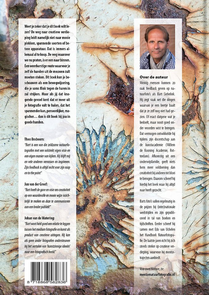 Weinig mensen kunnen zo raak feedback op foto’s verwoorden als Bart Siebelink. Hij zegt vaak net die dingen waarvan je een beetje baalt dat je ze zelf nog niet had gezien. Of exact datgene wat je bedoelt, maar nooit goed onder woorden wist te brengen. Dat vermogen heeft hij ontwikkeld tijdens zijn docentschap aan de kunstacademie (Willem de Kooning-academie, Rotterdam). Afkomstig uit een onderwijsfamilie, geeft niets hem meer voldoening dan creativiteit bij anderen tot bloei te brengen. Daarom schreef hij hierbij het boek waar hij altijd naar heeft gezocht.