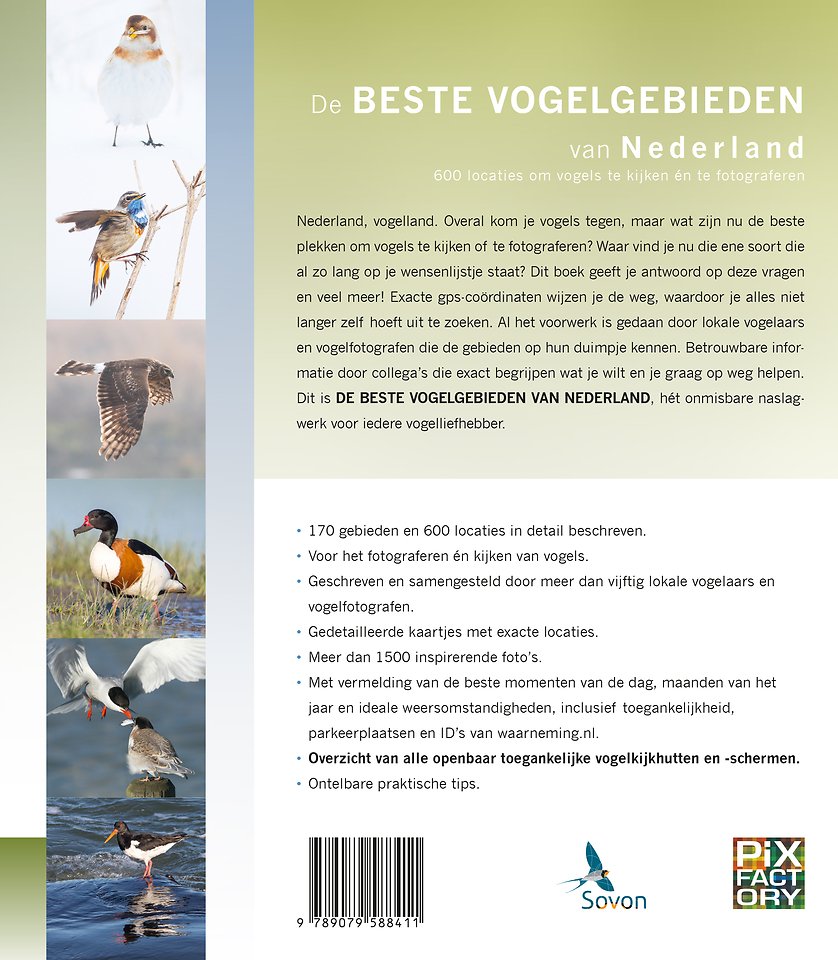 • Met vermelding van de beste momenten van de dag, maanden van het jaar en ideale weersomstandigheden, inclusief toegankelijkheid, parkeerplaatsen en ID’s van waarneming.nl.