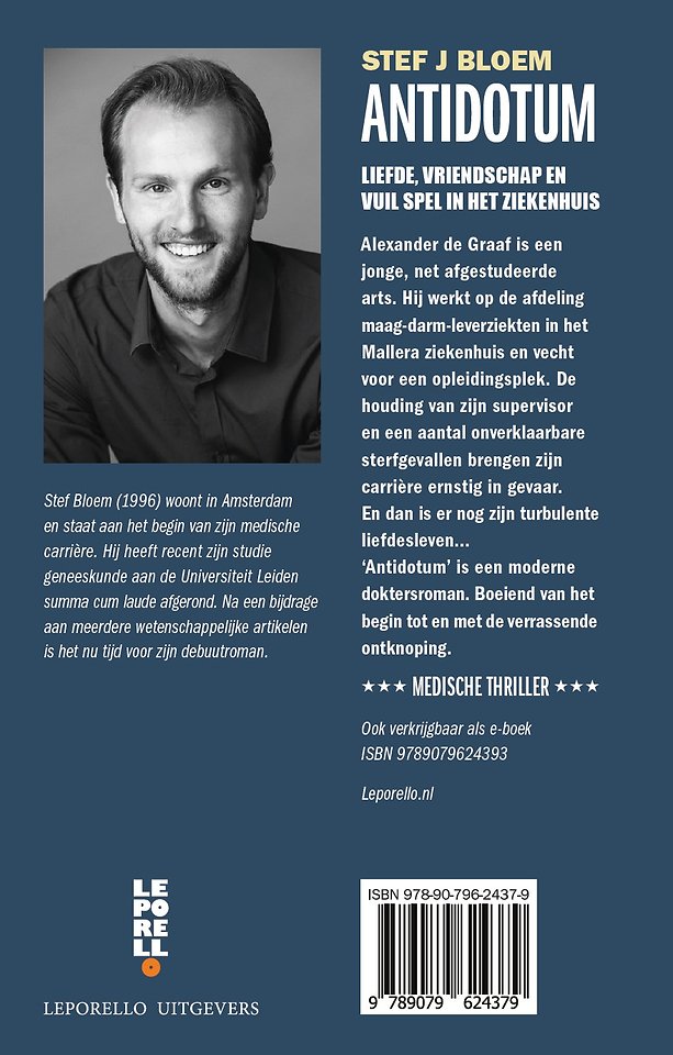 Stef Bloem (1996) woont in Amsterdam en staat aan het begin van zijn medische carrière. Hij heeft recent zijn studie geneeskunde aan de Universiteit Leiden summa cum laude afgerond. Na een bijdrage aan meerdere wetenschappelijke artikelen is het nu tijd voor zijn debuutroman.