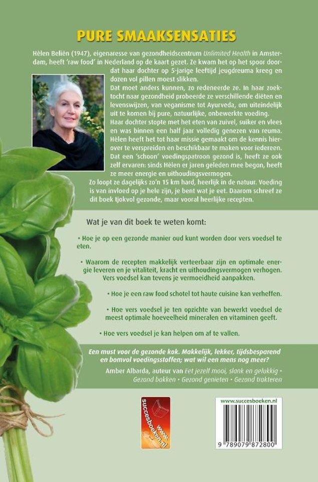 De auteur, Hèlen Beliën, gaat voor puur, niet gekookt of gebakken en onbewerkt voedsel. Dat geeft het beste resultaat. Eigenlijk 'back to basics'.