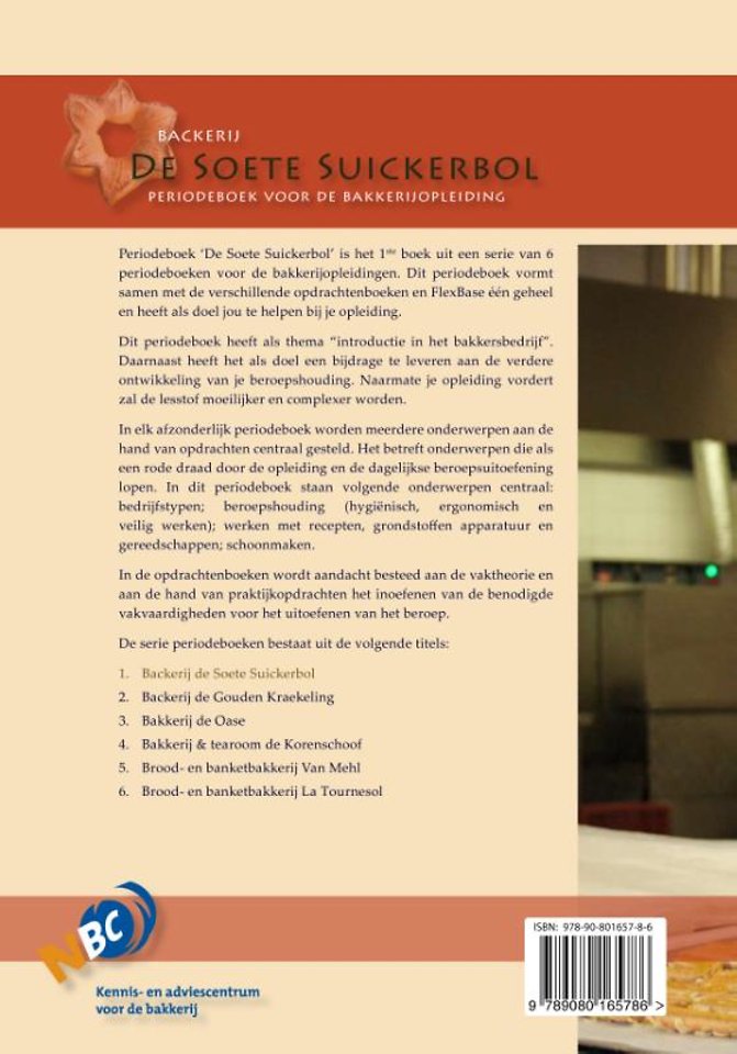 Periodeboek 'De Soete Suickerbol' is het 1ste boek uit een serie van 6 periodeboeken voor de bakkerijopleidingen. Dit periodeboek vormt samen met de verschillende opdrachtenboeken en FlexBase één geheel en heeft als doel jou te helpen bij je opleiding.