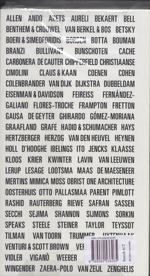 Met bijdragen van: Stan Allen, Tadao Ando, Wiel Arets, Geert Bekeart, Aaron Betsky, Stefano Boeri, Mario Botta, Ole Bouman, Jean-Louis Cohen, Jo Coenen, Lieven De Cauter, Rients Dijkstra, Peter Eisenman, Kristin Feireiss, Kenneth Frampton, Diane Ghirardo, Zaha Hadid, Michael Hays, Herman Hertzberger, Jacques Herzog, Hilde Heynen, Toyo Ito, Charles Jencks, Rob Krier, Sylvia Lavin, Lars Lerup, Winy Maas, Detlef Mertins, Hans Ulrich-Obrist, Saskia Sassen, Kazuyo Sejima, Dietmar Steiner, Harm Tilman, Hans van Dijk, Thomas van Leeuwen, Anthony Vidler, Sarah Whiting, Alejandro Zaero-Polo en Elia Zenghelis.