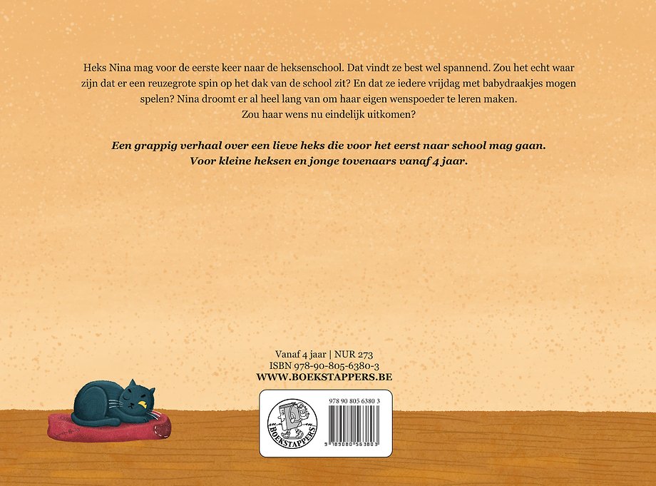 Heks Nina mag voor de eerste keer naar de heksenschool. Dat vindt ze best wel spannend. Zou het echt waar zijn dat er een reuzegrote spin op het dak van de school zit? En dat ze iedere vrijdag met babydraakjes mogen spelen? Nina droomt er al heel lang van om haar eigen wenspoeder te leren maken. Zou haar wens nu eindelijk uitkomen?