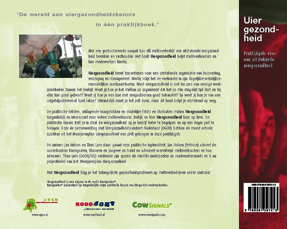 Uiergezondheid bevat bouwstenen voor een uitstekende organisatie van huisvesting, verzorging en management. Hierbij volgt het de veehouder in zijn dagelijkse-wekelijkse-maandelijkse werkzaamheden. Want uiergezondheid is niet los zien van overige werkzaamheden binnen het bedrijf. Weet jij hoe je het melken zo organiseert dat het zo min mogelijk tijd kost en bij elke koe goed gebeurt? Weet jij hoe je een koe met uierproblemen goed behandelt? En weet jij hoe je van een celgetalprobleem af kunt raken? Uiteindelijk moet je het zelf doen, maar dit boek helpt je uitstekend op weg.