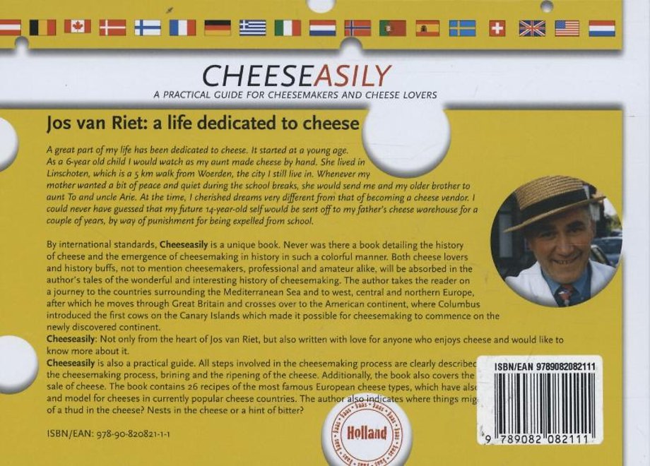 By international standards, Cheeseasily is a unique book. Never was there a book detailing the history of cheese and the emergence of cheesemaking in history in such a colorful manner. Both cheese lovers and history buffs, not to mention cheesemakers, professional and amateur alike, will be absorbed in the author's tales of the wonderful and interesting history of cheesemaking. The author takes the reader on a journey to the countries surrounding the Mediterranean Sea and to west, central and northern Europe, after which he moves through Great Britain and crosses over to the American continent, where Columbus introduced the first cows on the Canary Islands which made it possible for cheesemaking to commence on the newly discovered continent.