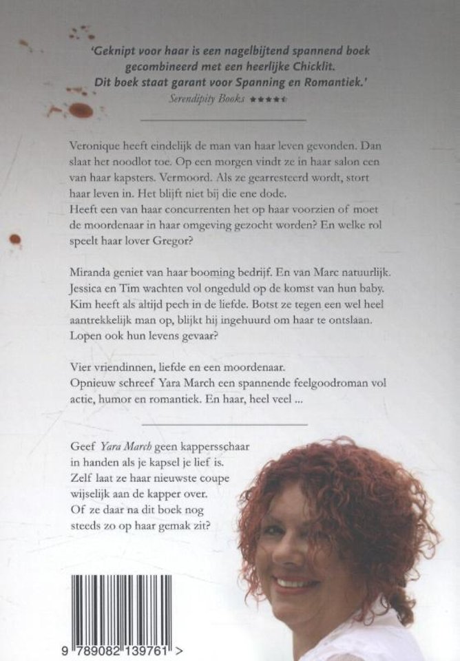 ‘Geknipt voor haar is een nagelbijtend spannend boek gecombineerd met een heerlijke Chicklit. Dit boek staat garant voor Spanning en Romantiek.’ Serendipity Books ****