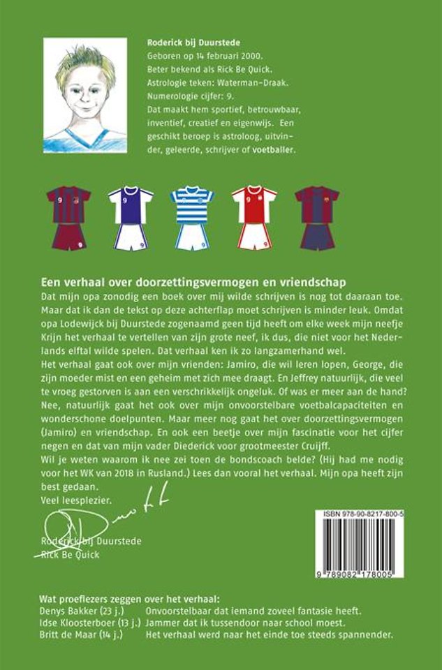 Na een bezoekje aan een waarzegster met George en Jamiro raakt Rick in de ban van het cijfer 9. Als hij op zijn vijftiende goed genoeg is voor het eerste van De Graafschap wil hij alleen nog maar spelen onder dat nummer. Ook bij Ajax laat hij bijna het contract afketsen. Nummer 9 of anders niet. Uiteindelijk gaat ook FC Barcelona overstag. Zelfs in het Nederlands elftal zou hij met dat nummer mogen spelen van de bondscoach. Maar hij weigert. Waarom?