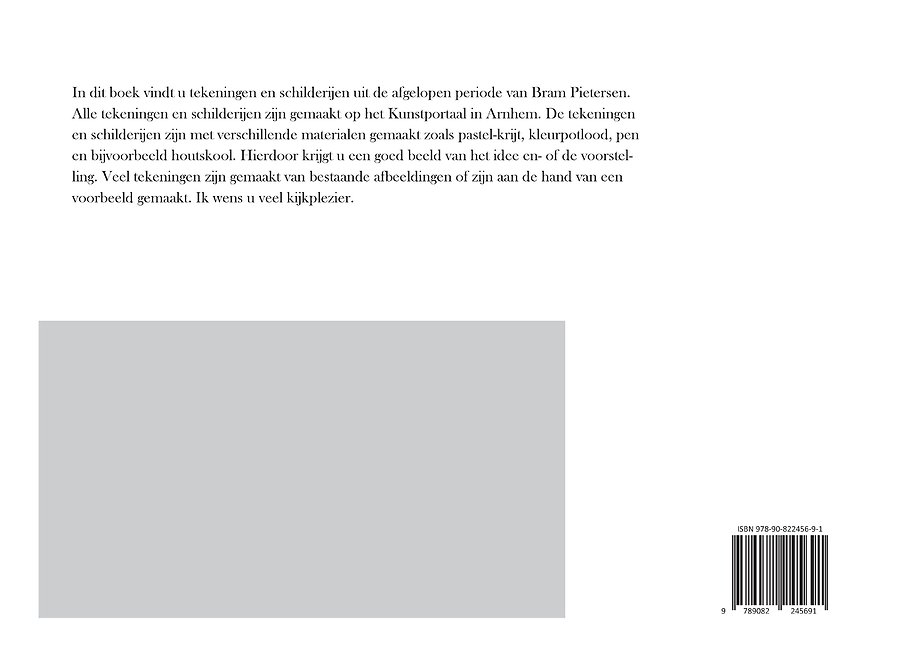 In dit boek vindt u tekeningen en schilderijen uit de afgelopen periode van Bram Pietersen. Alle tekeningen en schilderijen zijn gemaakt op het Kunstportaal in Arnhem. De tekeningen en schilderijen zijn met verschillende materialen gemaakt zoals pastel-krijt, kleurpotlood, pen en bijvoorbeeld houtskool. Hierdoor krijgt u een goed beeld van het idee en- of de voorstelling. Veel tekeningen zijn gemaakt van bestaande afbeeldingen of zijn aan de hand van een voorbeeld gemaakt. Ik wens u veel kijkplezier.