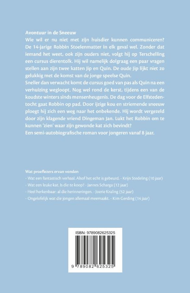 Wie wil er nu niet met zijn huisdier kunnen communiceren? De 14-jarige Robbin Stoelenmatter in elk geval wel. Zonder dat iemand het weet, ook zijn ouders en beste vriend niet, volgt hij op Terschelling een cursus dierentolk. Hij wil namelijk dolgraag een paar vragen stellen aan zijn twee katten Jip en Quin, omdat de oudere Jip niet zo gelukkig lijkt met de komst van de jonge speelse Quin.