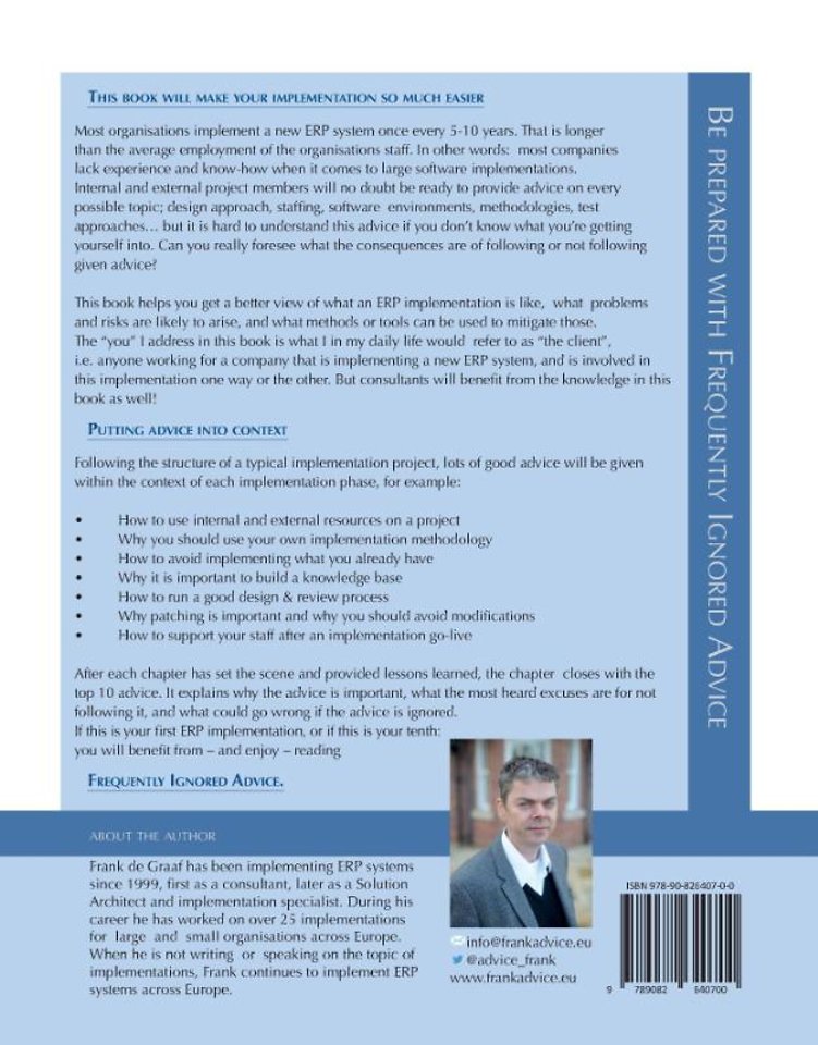 If this is your first ERP implementation, or if this is your tenth: you will benefit from - and enjoy - reading Frequently Ignored AdvIce.