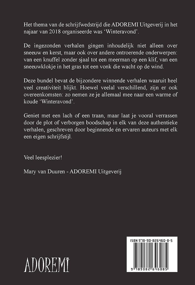 Het thema van de schrijfwedstrijd die ADOREMI Uitgeverij in het najaar van 2018 organiseerde was ‘Winteravond’.