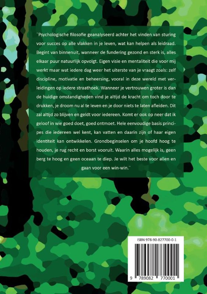 ¨Psychologische filosofie geanalyseerd achter het vinden van sturing voor succes op alle vlakken in je leven, wat kan helpen als leidraad. Begint van binnenuit, wanneer de fundering gezond en sterk is, alles elkaar puur natuurlijk opvolgt. Eigen visie en mentaliteit die voor mij werkt maar wat iedere dag weer het uiterste van je vraagt zoals: zelf discipline, motivatie en beheersing, vooral in deze wereld met verleidingen op iedere straathoek. Wanneer je vertrouwen groter is dan de huidige omstandigheden vind je altijd de kracht om toch door te drukken, je droom nu al te leven en je door niets te laten afleiden. Dit zal altijd zo blijven en geldt voor iedereen. Komt er ook op neer dat ik geloof in wie goed doet, goed ontmoet. Hele eenvoudige basis principes die iedereen wel kent, kan vatten en daarin zijn of haar eigen identiteit kan ontwikkelen. Grondbeginselen om je hoofd hoog te houden, je rug recht en borst vooruit. Waarin alles mogelijk is, geen berg te hoog en geen oceaan te diep. Je wilt het beste voor allen en gaan voor een win-win.¨