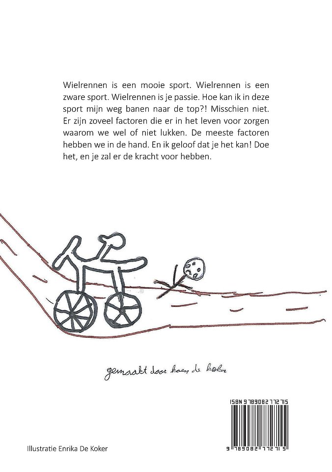 Wielrennen is een mooie sport. Wielrennen is een zware sport. Wielrennen is je passie. Hoe kan ik in deze sport mijn weg banen naar de top?! Misschien niet. Er zijn zoveel factoren die er in het leven voor zorgen waarom we wel of niet lukken. De meeste factoren hebben we in de hand. En ik geloof dat je het kan! Doe het, en je zal er de kracht voor hebben. Zelf reed ik 525 koersen en bij deze wil ik zoveel mogelijk nuttige informatie delen die zou kunnen helpen in je wielercarrière. Ook bijdragen van Dopingjager Dr Hans Cooman en ex-renner en sportbestuurder Rudy pevenage. Met een voorwoord van Minister Sven Gatz. Verder werkten mee Igor Van Den Berghe, Luc Schuddinck, Franky De Buyst en Charles Palmans.