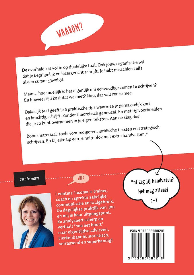 Maar… hoe moeilijk is het eigenlijk om eenvoudige zinnen te schrijven? En hoeveel tijd kost dat wel niet? Nou, dat valt reuze mee. Duidelijk taal geeft je 6 praktische tips waarmee je gemakkelijk kort en krachtig schrijft. Zonder theoretisch geneuzel. En met tig voorbeelden die je zo kunt overnemen in je eigen teksten. Aan de slag dus!