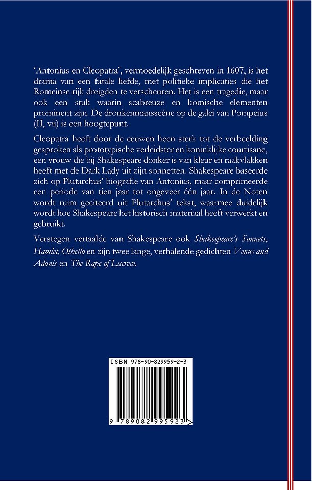 Cleopatra heeft door de eeuwen heen sterk tot de verbeelding gesproken als prototypische verleidster en koninklijke courtisane, een vrouw die bij Shakespeare donker is van kleur en raakvlakken heeft met de Dark Lady uit zijn sonnetten. Shakespeare baseerde zich op Plutarchus’ biografie van Antonius, maar comprimeerde een periode van tien jaar tot ongeveer één jaar. In de Noten wordt ruim geciteerd uit Plutarchus’ tekst, waarmee duidelijk wordt hoe Shakespeare het historisch materiaal heeft verwerkt en gebruikt.