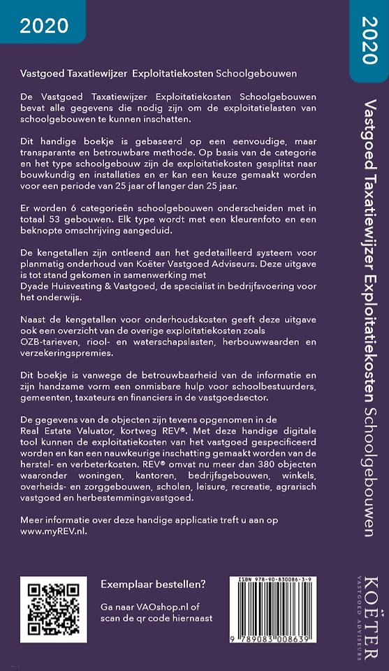 Dit boekje is vanwege de betrouwbaarheid van de informatie en zijn handzame vorm een onmisbare hulp voor schoolbestuurders, gemeenten, taxateurs en financiers in de vatgoedsector.