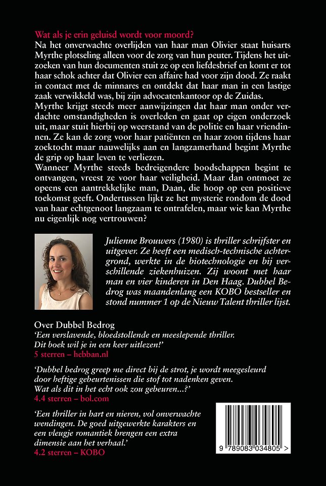 "Dubbel bedrog kun je niet meer wegleggen, telkens weer verrassingen die stof tot nadenken geven. Wat als dit in het echt ook zou kunnen gebeuren...?"