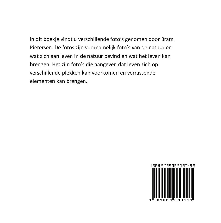 In dit boekje vindt u verschillende foto’s genomen door Bram Pietersen. De fotos zijn voornamelijk foto’s van de natuur en wat zich aan leven in de natuur bevind en wat het leven kan brengen. Het zijn foto’s die aangeven dat leven zich op verschillende plekken kan voorkomen en verrassende elementen kan brengen.