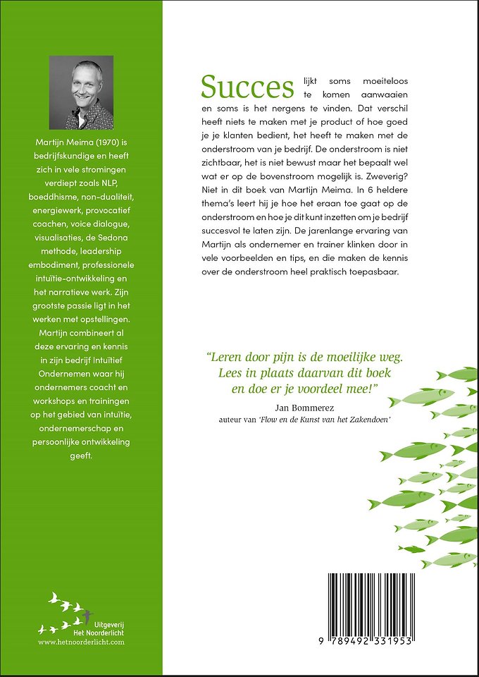 Zweverig? Niet in dit boek van Martijn Meima. In 6 heldere thema’s leert hij je hoe het eraan toe gaat op de onderstroom en hoe je dit kunt inzetten om je bedrijf succesvol te laten zijn. De jarenlange ervaring van Martijn als ondernemer en trainer klinkt door in vele voorbeelden en tips, en die maken de kennis over de onderstroom heel praktisch toepasbaar.