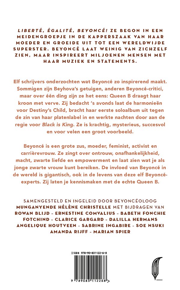 Samengesteld en ingeleid door Beyoncéoloog Munganyende Hélène Christelle. Met bijdragen van Rowan Blijd - Ernestine Comvalius - Babeth Fonchie Fotchind - Clarice Gargard - Dalilla Hermans - Angelique Houtveen - Sabrine Ingabire - Soe Nsuki - Amanda Rijff - Marian Spier