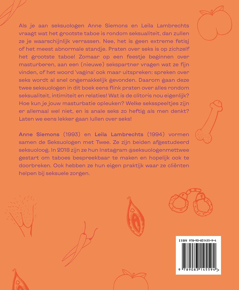 Als je aan seksuologen Anne Siemons en Leila Lambrechts vraagt wat het grootste taboe is rondom seksualiteit, dan zullen ze je waarschijnlijk verrassen. Nee, het is geen extreme fetisj of het meeset abnormale standje. Praten over seks is op zichzelf het grootste taboe! Zomaar op een feestje beginnen over masturberen, aan een (nieuwe) sekspartner vragen wat ze fijn vinden, of het woord 'vagina' ook maar uitspreken: spreken over seks wordt al snel ongemakkelijk gevonden. Daarom gaan deze twee seksuologen in dit boek eens flink praten over alles rondom seksualiteit, intimiteit en relaties! Wat is de clitoris nou eigenlijk? Hoe kun je je jouw masturbatie opleuken? Welke seksspeeltjes zijn er allemaal wel niet, en is anale seks zo heftig als men denkt? Laten we eens lekker gaan lullen over seks!
