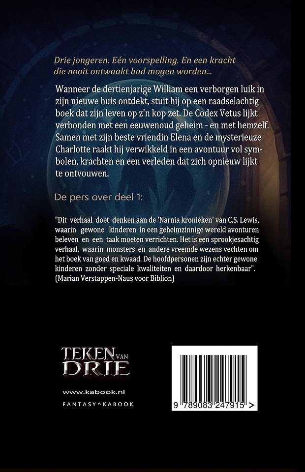 Wanneer de dertienjarige William een verborgen luik in zijn nieuwe huis ontdekt, stuit hij op een raadselachtig boek dat zijn leven op z’n kop zet. De Codex Vetus lijkt verbonden met een eeuwenoud geheim — en met hemzelf. Samen met zijn beste vriendin Elena en de mysterieuze Charlotte raakt hij verwikkeld in een avontuur vol symbolen, krachten en een verleden dat zich opnieuw lijkt te ontvouwen.
