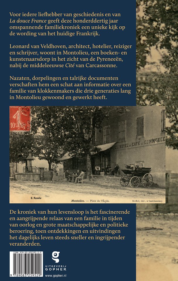 In 2005 vestigde Leonard van Veldhoven zich samen met zijn vrouw in Montolieu, in het zuiden van Frankrijk. Door zijn passie voor klokken en de liefde voor het dorp dat hem zo warm onthaalde, dook hij in de geschiedenis van dit dorp en van de klokkenmakers die er woonden en werkten. Dit resulteerde eerder al in het boek Montolieu, son histoire et ses horlogers en later in dit prachtige epos over een familie van klokkenmakers.