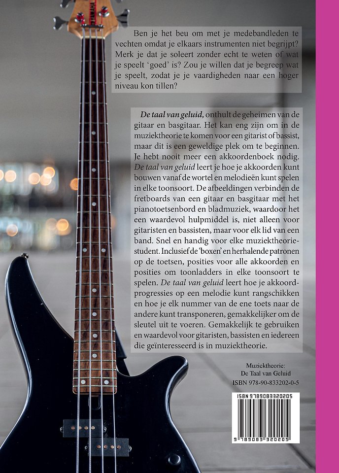 De taal van geluid - in kleur - Deel 1, onthult de geheimen van de gitaar en basgitaar. Het kan eng zijn om in de muziektheorie te komen voor een gitarist of bassist, maar dit is een geweldige plek om te beginnen. Je hebt nooit meer een akkoordenboek of theorieboek nodig. De taal van geluid leert je hoe je akkoorden kunt bouwen vanaf de wortel en melodieën kunt spelen in elke toonsoort. De graphics verbinden de fretboards van een gitaar en basgitaar met het pianotoetsenbord en bladmuziek, waardoor het een waardevol hulpmiddel is, niet alleen voor gitaristen en bassisten, maar voor elk lid van een band. Snel en handig voor elke muziektheoriestudent. Inclusief de 'boxen' en herhalende patronen op de toetsen, posities voor alle akkoorden en posities om toonladders in elke toonsoort te spelen. De taal van geluid leert hoe je akkoordprogressies op een melodie kunt rangschikken en hoe je elk nummer van de ene toets naar de andere kunt transponeren, gemakkelijker om de sleutel uit te voeren. Gemakkelijk te gebruiken en waardevol voor gitaristen, bassisten en toetsenisten.
