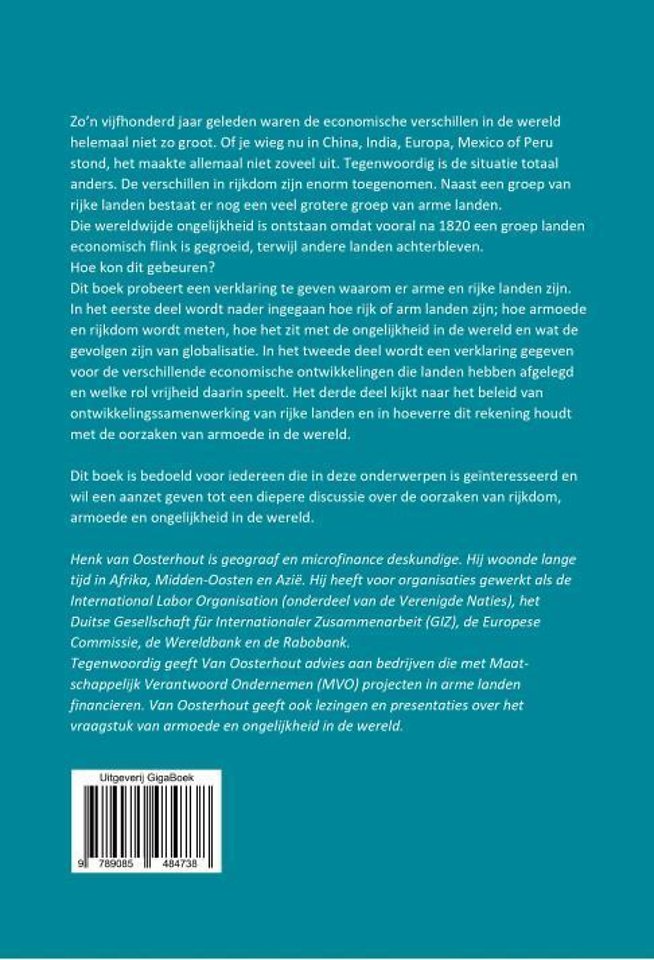 Henk van Oosterhout is geograaf en microfinance deskundige. Hij woonde lange tijd in Afrika, Midden-Oosten en Azië. Hij heeft voor organisaties gewerkt als de International Labor Organisation (onderdeel van de Verenigde Naties), het Duitse Gesellschaft für Internationaler Zusammenarbeit (GIZ), de Europese Commissie, de Wereldbank en de Rabobank. Tegenwoordig geeft Van Oosterhout advies aan bedrijven die met Maatschappelijk Verantwoord Ondernemen (MVO) projecten in arme landen financieren. Van Oosterhout geeft ook lezingen en presentaties over het vraagstuk van armoede en ongelijkheid in de wereld.